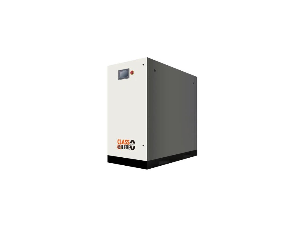 Bezolejové spirálové kompresory s plynulou regulací výkonu jsou ideální volbou pro aplikace, kde je nezbytné zajistit čistý, suchý a hygienicky nezávadný stlačený vzduch. Díky bezkontaktní technologii bez použití oleje a extrémně tichému chodu jsou tyto kompresory hojně využívány ve zdravotnictví, zejména v zubních ordinacích, laboratořích, potravinářství, do výroby polovodičů / čipů a dalších provozech s vysokými nároky na kvalitu vzduchu a nízkou hlučnost. Kompaktní konstrukce a minimální vibrace umožňují instalaci i v prostorách blízko pracovního prostředí. Kompresory jsou dostupné v různých výkonnostních a tlakových variantách pro přesné přizpůsobení konkrétnímu použití. Inteligentní mikroprocesorová řídicí jednotka zajišťuje efektivní provoz s důrazem na úsporu energie a spolehlivý chod bez výpadků.