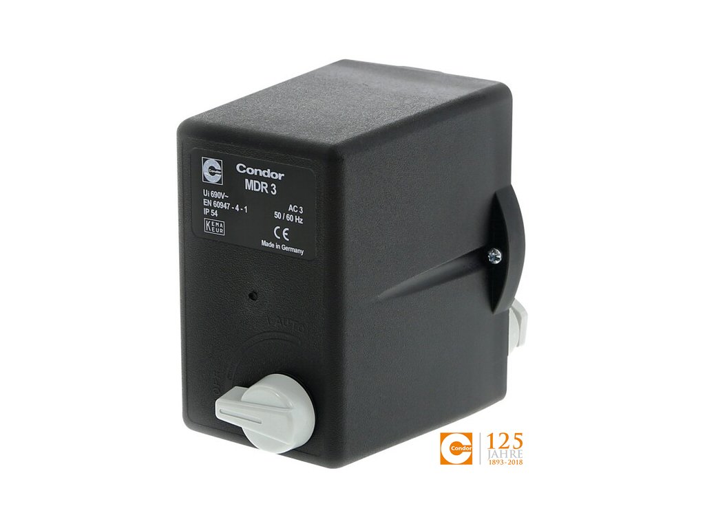 Tlakový spínač je pro chod vzduchového kompresoru zásadním prvkem. Zabezpečuje jeho plně automatický chod, kdy díky nastavení spínacího tlaku můžete snadno přizpůsobit svůj kompresor plánovanému použití. Kompresorové tlakové spínače Condor se vyrábějí v německém Ennigerloh a jsou oblíbené zejména díky své vysoké kvalitě zaručující dlouho životnost. Unikátní je také jejich dvojité nastavení, kdy stejně jako běžně dodávané tlakové spínače umožnují nastavení spínacího tlaku kompresoru (dolní hranice), navíc ale také mají unikátní funkci nastavení rozsahu spínání a vypínaní kompresoru. Díky této kombinaci tlakových spínačů Condor MDR 3 je možné naplno využívat potenciál pístového kompresoru, například díky možnosti nastavení rozsahu spínání kompresoru a maximálního tlaku až 11 bar, lze tento kompresor použít i pro autoservis a pneuservis nákladních vozů (spínání nad 9 bar). 2-stupňových průmyslových kompresorů ve variantě 11 bar a u vysokotlakých až 15 bar. Pouze pro varianty 400 V.