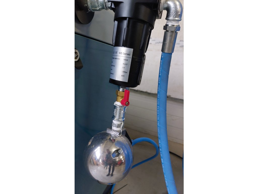 Plovákový odvaděč kondenzátu automaticky odvádí nežádoucí zkondenzovanou vodu ze vzdušníku, filtru nebo separátoru v systémech stlačeného vzduchu na výstupu pístových kompresorů s tlakem do 16 bar. Externí (vnější) odpouštěč kondenzátu se montuje pod tlakovou nádobu, filtr nebo separátor se vstupním rozměrem závitu G 1/2". Plovákový odvaděč kondenzátu je určen pro námi prodávané filtrační sestavy Profi, Industry a jiné výrobce filtrů a separátorů stlačeného vzduchu vycházejícího z olejového kompresoru. Externí plovákový vypouštěč kondenzátu má jednoduchou montáž s napojením výstupního potrubí se závitem G1/2" a také s možností manuálního odkalení ventilem na spodní části. Lehké a přitom pevné hliníkové tělo plovákového odvaděče je zkonstruováno tak, že automaticky funguje bez využití elektrické energie s rychlostí odvodu zkondenzované kapaliny 400l/h.