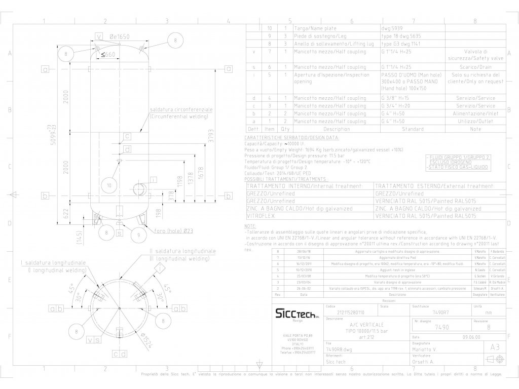 Největší výrobce tlakových nádob v Evropě SICC srl je tradiční společnost ze severního regionu Itálie - Benátsko. Tradiční výrobce založený roku 1973 je dnes respektovaným dodavatelem všech velkých kompresorových firem a dvorním dodavatelem švédského koncernu Atlas Copco. Společnost nabízí kompletní rozsah výroby tlakový nádob pro všechny plyny a tekutiny, v objemech od 100 litrů do 15000 litrů sériové, ze všech materiálů včetně nerezu a pro všechny tlaky až do 200 barů.