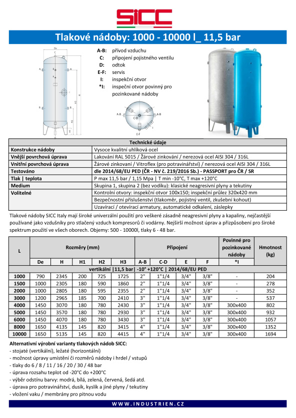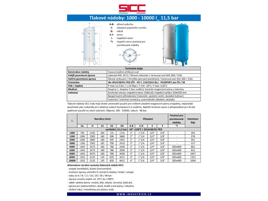 Největší výrobce tlakových nádob v Evropě SICC srl je tradiční společnost ze severního regionu Itálie - Benátsko. Tradiční výrobce založený roku 1973 je dnes respektovaným dodavatelem všech velkých kompresorových firem a dvorním dodavatelem švédského koncernu Atlas Copco. Společnost nabízí kompletní rozsah výroby tlakový nádob pro všechny plyny a tekutiny, v objemech od 100 litrů do 15000 litrů sériové, ze všech materiálů včetně nerezu a pro všechny tlaky až do 200 barů.